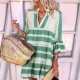 Never settle! You are the whole package and deserve to have it all! Show your fun and flirty side in this loose-fitting, green and white color block dress with dainty geometric designs, collarless v-neck with tassels, and bell cuff sleeves.